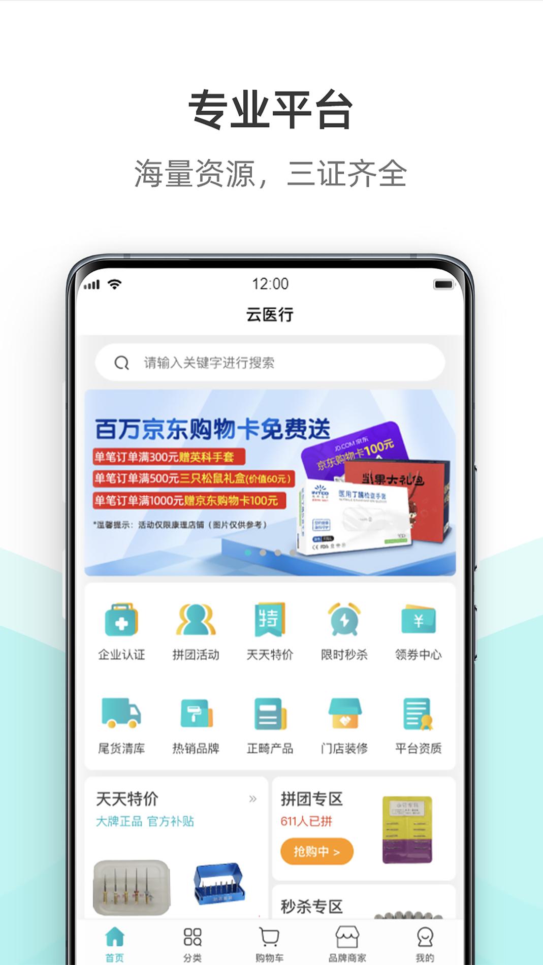 云医行是一款非常便捷又好用的手机医疗商品购物软件,在软件中,用户将能够使用该软件去进行各种医疗商品的购物,软件里面为用户提供了非常丰富的商品资源,能够帮助用户来以优惠的价格进行购入。软件使用起来非常便捷方便,软件功能强大,欢迎用户去进行下载云医行。