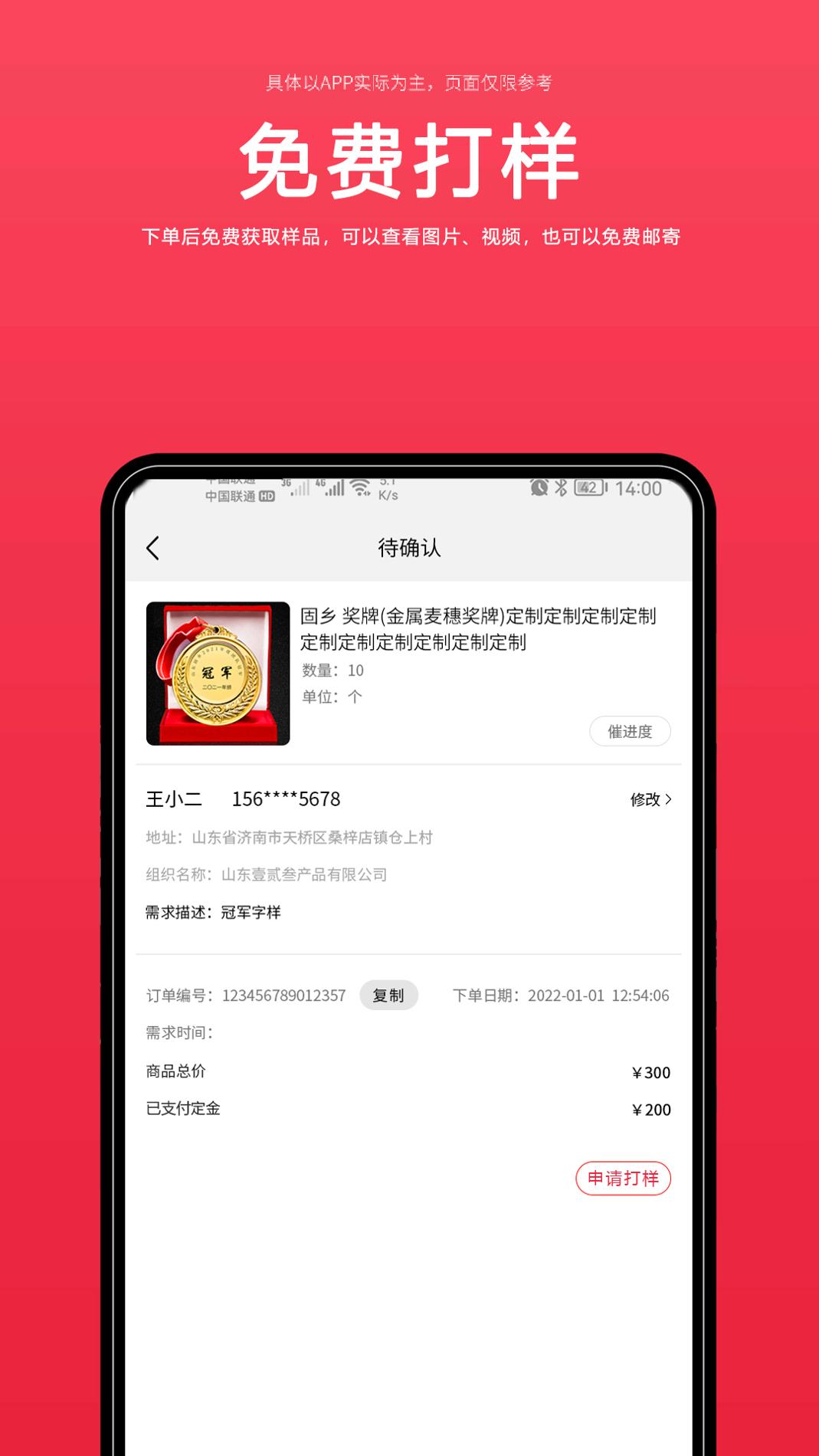 3. 用户下单后,可通过APP查看打样、生产、包装等情况。