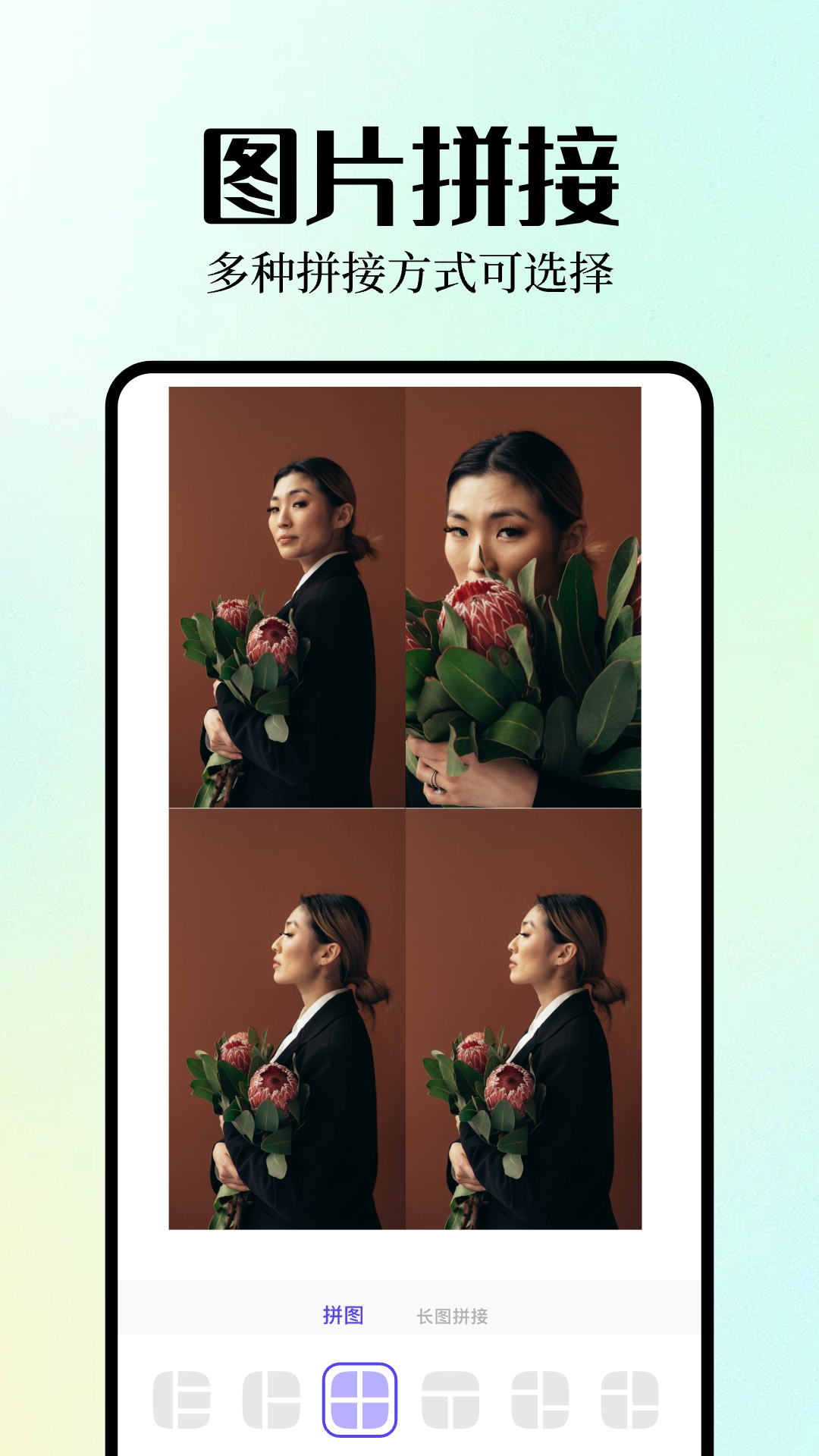 2、图片拼接,多种拼接方式可以选择,都是免费提供的。