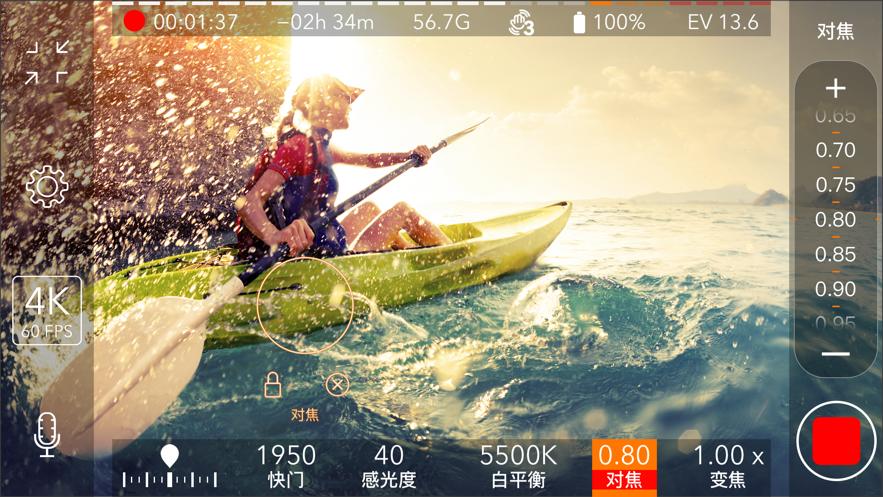 3、手动控制曝光、快门、感光度、对焦和白平衡;