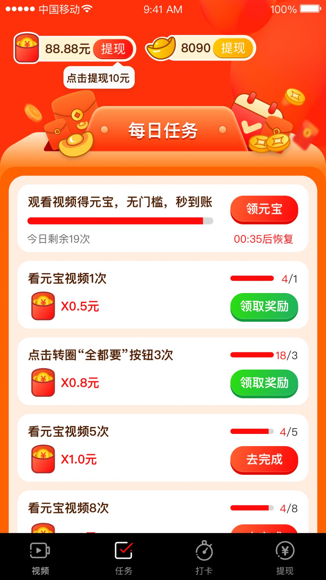 3、快乐宝短视频有很多的激励任务,供用户去选择完成,