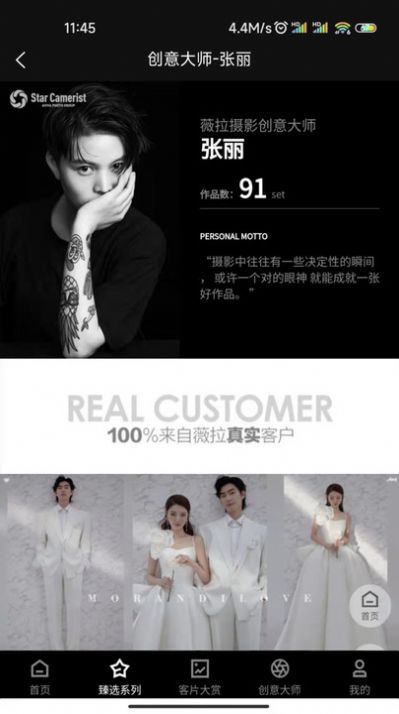 2、海量真实客片、热门风格推荐。你可以使用薇拉图志浏览、收藏你喜欢的婚照,以及完成婚照预约和客服咨询服务;
