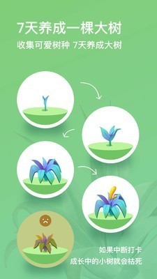 打卡森林是一款专门为用户们提供打卡服务的手机软件,软件内功能非常的齐全,能够为用户们提供非常齐全的服务,让用户们能够养成每天打卡的好习惯,感兴趣的话就快来下载使用吧!打卡一周用户就可以得到一颗小树,时间长久之后,用户就可以得到一片属于自己的森林了,不过打卡中断的话,正在成长中的小树会枯死哦!
