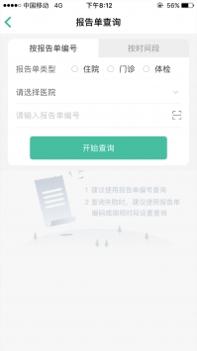 +报告单查询:支持通过报告单编号及报告单生成时间查询门诊报告,住院报告,体检报告;