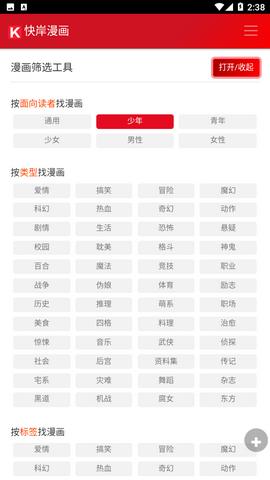 1、快岸漫画为你带来全面的漫画分区,更好的在线进行追漫