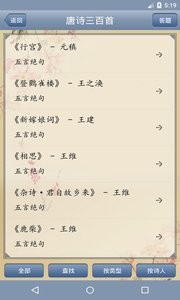唐诗三百首app,包括拼音字母拼音和注解、译文翻译、鉴赏,再加墨笔画唯美古风的室内设计风格,为用户出示心旷神怡的古诗词诗意。百度收录了近千位作家,共三百多首唐诗宋词,此外也有近三百多首中小学校记诵的受欢迎古诗词。领略到唐诗宋词风采,弘扬中华优秀传统文化,经典国学,合适全国性青少年及高中学生的最好教材内容。古诗词內容全方位,检索文件目录,客户可迅速精准定位搜索到喜爱的古诗词。