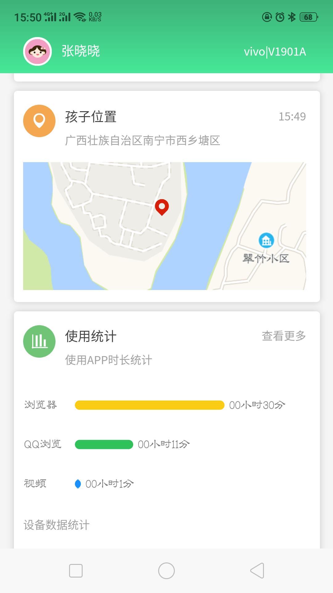 随时随地都能够访问孩子的位置信息,让家长掌握小孩当前的位置;app会全自动统计分析小孩应用手机的时间,家长能够清晰的了解小孩应用手机的情况;与小孩的手机开展关联之后,就能掌握好孩子每日应用手机的情况了。