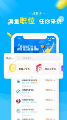 月交子是一款十分不错的找零工服务软件,月交子app所有职位均为平台负责招聘和服务,随时都可以来这里寻找你喜欢的工作,不管是暑假工还是周末工都可以满足到,也可以认定一个岗位目标来介绍自己入职,更重要的是可以让你充分利用空余时间自由接单,根据个人搜索精准匹配,个人更满意,企业更高效,任务完成后薪资实时到账,无需担心工资问题。