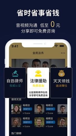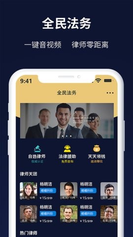 全民法务app这里可以为许多用户解决不同的法律和法务问题,各位在这里都可以获取更多专业的法务帮助,大家都可以轻松不费力的在这里使用免费的法律咨询功能服务,同时还有其他不同的安全保障功能,人人都能够在这里享受更加安全和安心的律师服务,同时还有不同类型的一对一法律咨询问题,各位都可以快速的在这里处理不同的案件以及其他相应的问题。