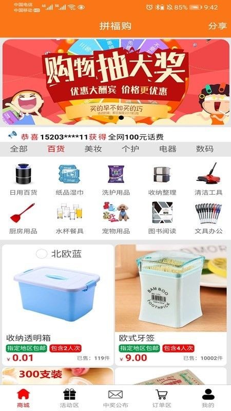 拼福购是一款非常好用的手机线上购物软件,软件内有非常多的购物商品为你提供,能够轻松的满足用户们的各种购物需求,非常的实用,这里的商品质量非常的好用,种类也非常的齐全,让你不出门就能够购物!