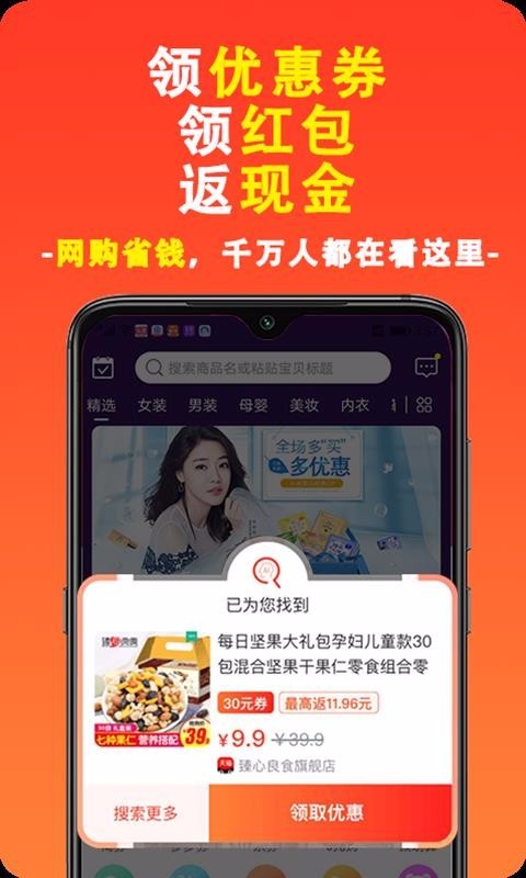一秒之内就能找到对应的券,值得注意的是,这里的任意面值优惠券都能免费的领用,并且是终身免费领取和使用,所以,如果坚持使用这个购物app手机版买商品的话就能为用户节省很多的购物成本,让自己的购物资金不那么紧缺,每次购物的时候就不用担心每月“剁手”的问题,想买就买,非常畅快,赶紧为自己下载一个吧。