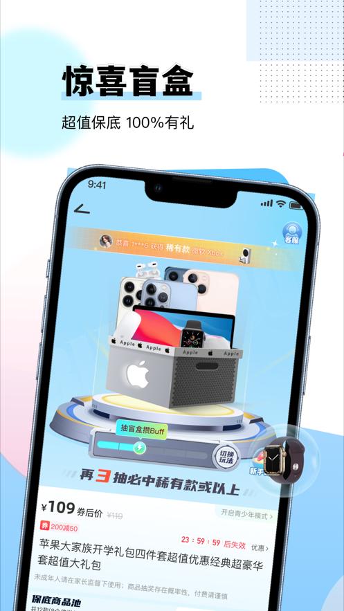 1、它是一款在线购物应用程序,提供了多种玩法,例如盲盒,让每个人都能在购物过程中感受到更多惊喜。