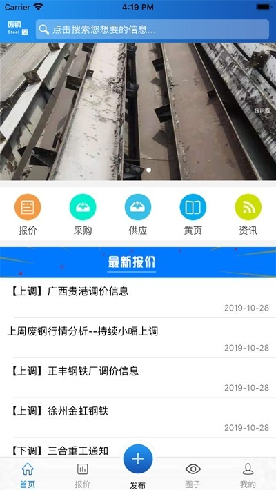 废钢圈,咱废钢行业自己的圈子;我在使用废钢圈看行情,做生意。实时报价,供求信息,设备买卖,一应俱全,快来加入吧。