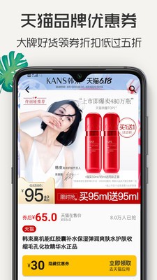 2、领品牌优惠券:无需注册一键直呼淘宝拼多多客户端领券,安全方便。可通过搜索方式对不同平台同种商品进行比价购买