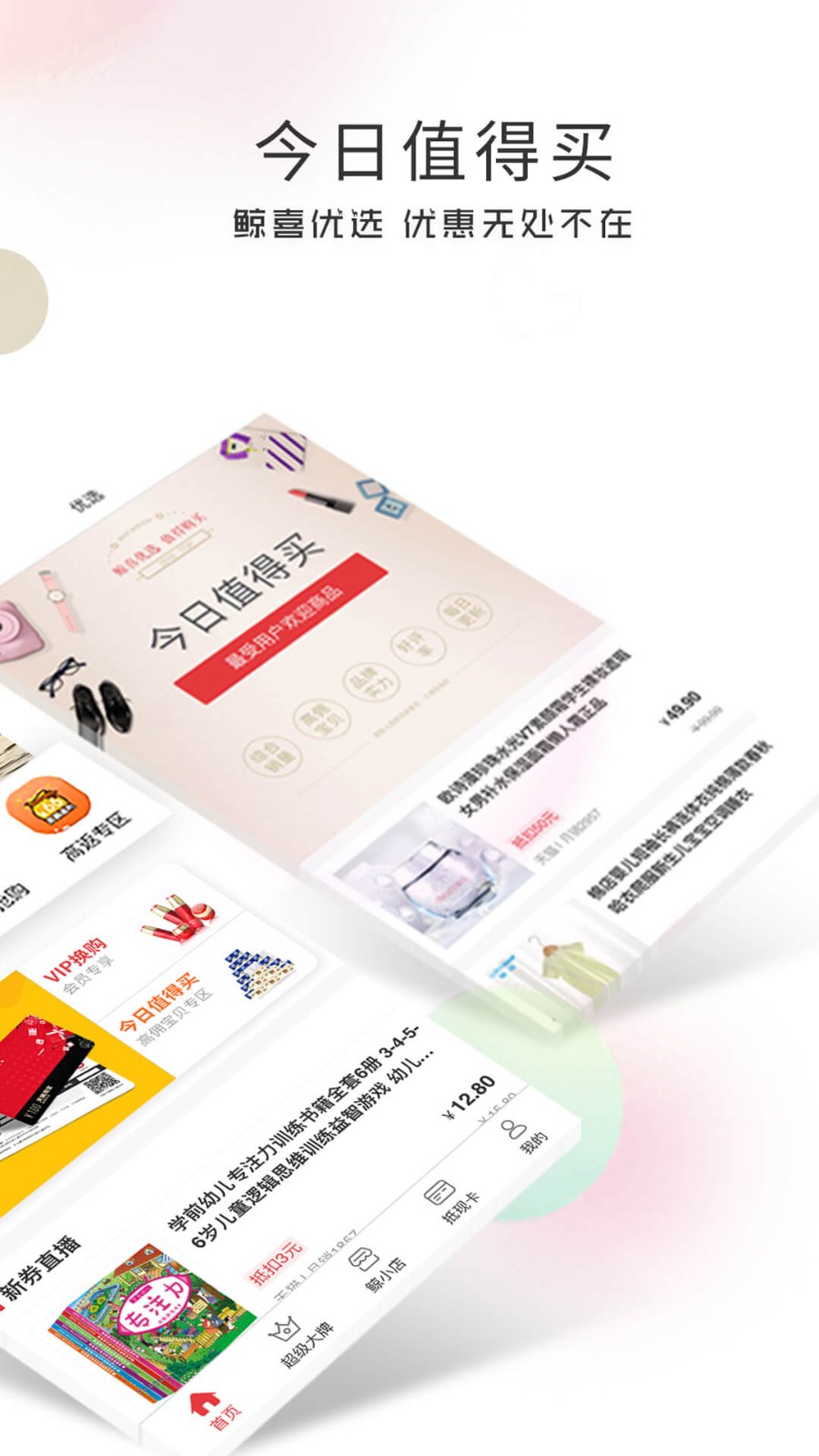 鲸小喜app是一个为大家带来便利和实惠的导购应用,不断搜集各个平台的各种品质商品,每天更新海量内部优惠,让大家购物更加省钱。服装、配饰、鞋包、食品、美妆、日用百货、数码家电等,大家想买的都有优惠。
