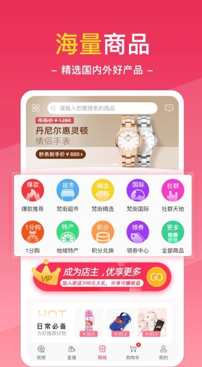 是一款网购达人首选的省钱工具,让每位用户都能够找到自己心仪的好产品,海量大额优惠券让你领到手软,梵街商城每天为您精选海外热销产品,购物绝对不花一分冤枉钱,让产品价值最大话,买家和卖家共同盈利,让消费者随时都可以享受到非常多的优惠活动,梵街商城每天为您精选海外热销产品,精选海内外大牌优质商品、地域特色及自主研发商品。