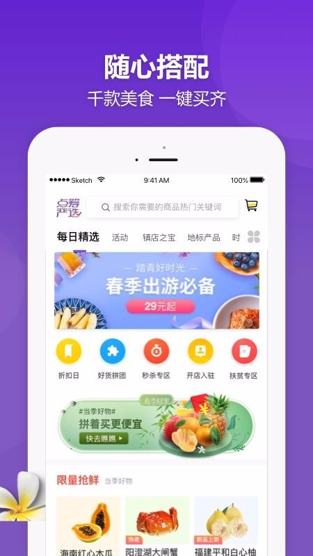 点筹网app是为用户打造的一个日常生活网购平台,服务平台聚集了丰富多彩生鲜食品蔬菜水果,您这里就能立即购买蔬菜水果、肉类食品、新鲜水果、海货等产品,并且这儿的产品全是低价位供货的,用户之后就可以不出门轻轻松松的购买各种各样生鲜食品蔬菜水果,能够让很多用户获得十分便捷的购物感受;这儿还会继续为您提供很多特惠的购物主题活动,您在服务平台就能享有大量价钱特惠了,比您线下推广购物还要划算、还要便捷。