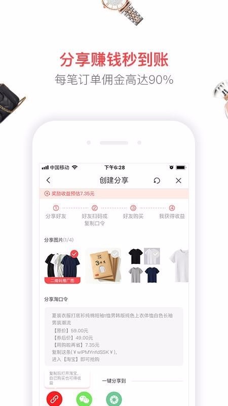 链接转发,一键创建商品分享,复制商品的推广链接,分享链接给好友即可;