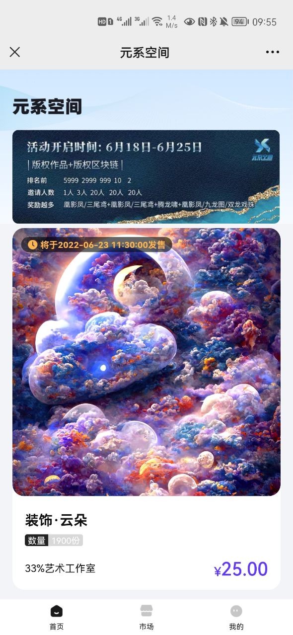 1、元系空间数字藏品首页为你展现最新的活动信息,新用户可以获得超值好礼