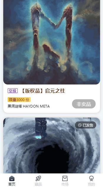 黑洞谜塔是一款可以轻松购买数字艺术藏品的软件,在黑洞谜塔可以发现很多优质的数字藏品,首页为你推送全新上线的活动,参与活动可以获得更多的奖励,实时的在线进行艺术藏品购买,各类型的藏品任你自由的选择,放心的在线进行艺术藏品购买,超多优质的藏品在这里都是可以进行购买的,超多高品质的藏品在这里任你选择,帮助用户获得更好的艺术藏品购买服务,感兴趣的用户可以下载体验