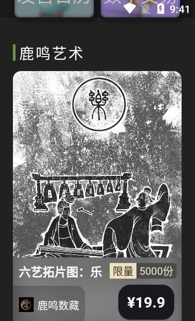 鹿鸣数藏是一款很优质的藏品购买服务软件,在鹿鸣数藏可以轻松在线进行藏品购买,超多文创艺术品打造全新的交易模式,满足不同用户的虚拟货币交易服务,在这里打造最专业的数字藏品交易服务,在这里更好的购买自己想要的数字艺术藏品,随时可以在线进行藏品购买,轻松在线进行数字艺术藏品购买,丰富的数字艺术藏品任你自由的选择,为你带来更好的藏品购买服务,感兴趣的用户可以下载体验