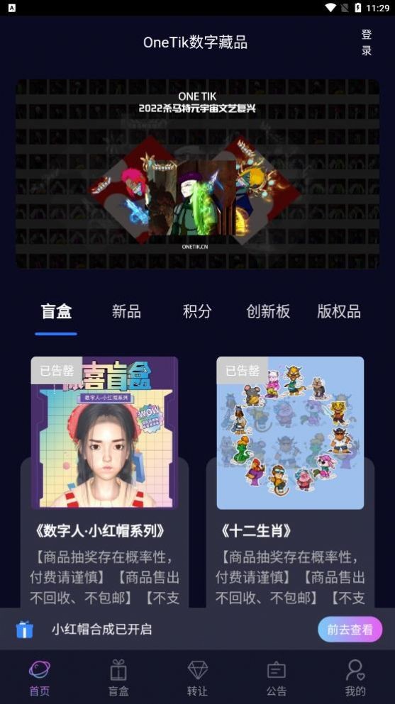 1、OneTik数字藏品可以实时的查看自己的藏品,在这里有很多新品推荐