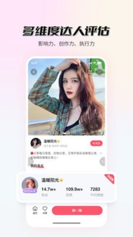 1.为品牌和平台达人促成内容种草推广的app,现已入驻小红书、抖音、微博、B站等数万KOC达人