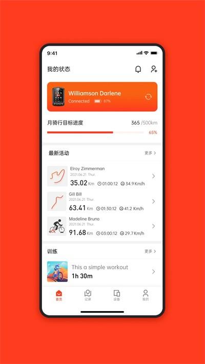 4.使用手机连接到系统,可以随时在手机上记录骑行数据。