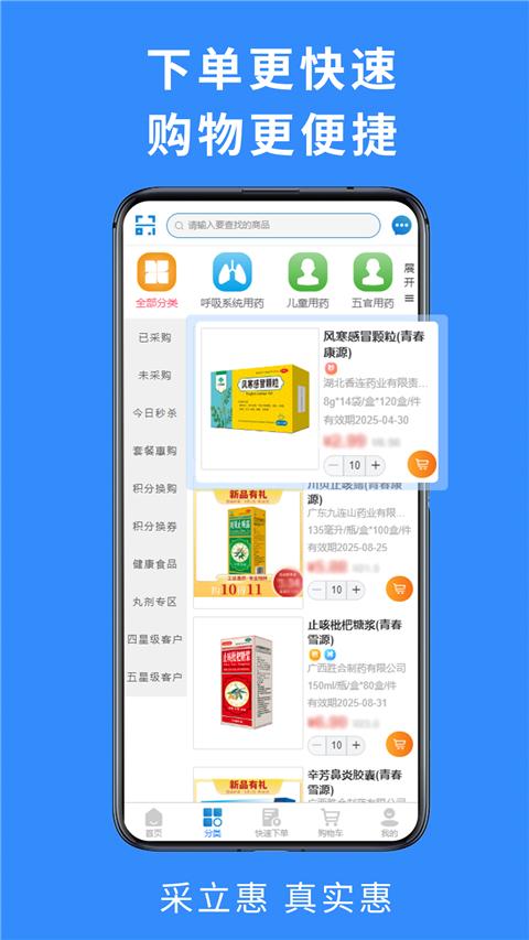 采立惠是一个B2B医药供应链服务平台,这里拥有海量好药,企业自营生产,药品质量经过严格把控,用户可以放心采购。采立惠软件内还提供了丰富的优惠活动,全场满赠专享,采购价直降60%以上,让你便宜采好药!采购之后发货迅速,顺丰京东直配到店,采购过程遇到问题可以一键咨询专业的人工客服,下单发货的所有药品都经严格打包再发货,保护客户的药品信息安全,让您放心购好药!