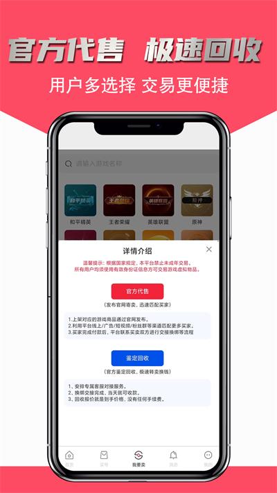飞衡代售app是专为游戏玩家打造的账号交易软件,用户可以通过该平台找到各种价格实惠,有质量保证的大神级别账号,平台拥有专门的客户服务团队,为玩家提供一个安全、可靠的交易环境。严格筛选,确保每个账号都经过严格的审核和验证,以保证账号的真实性和质量。同时飞衡代售还提供终身包赔的服务,一旦发生任何问题,将全力保障你的权益,让你无后顾之忧。