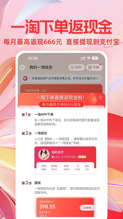 5、不止省钱还有福利,每天签到抽现金,做任务攒能量,可兑大额红包,购物直接抵扣。