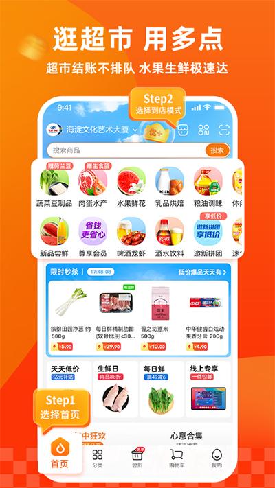 安心逛超市,用多点智能购:手机自由购结账,自助收银机结账、智能购物车结账,最快3秒结账不排队,不接触更安心。