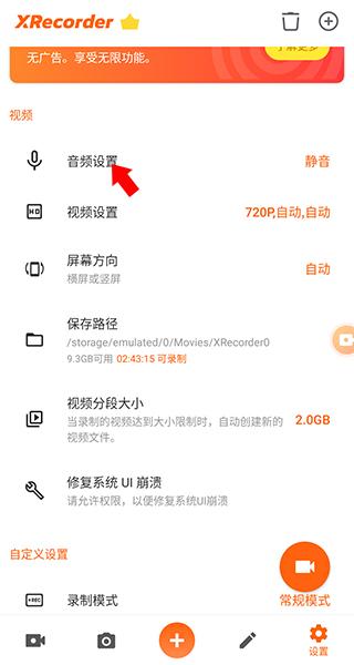 1、在本站下载安装并打开XRecorder,点击右下角的设置选项