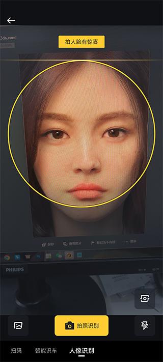 3、这时将人脸放进黄色的方框中,点击【圆点】拍照,等待几秒结果就出现啦。