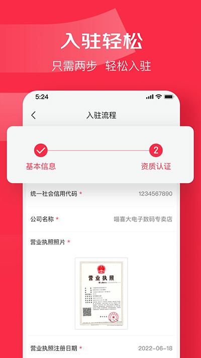1、用户入驻链路优化,简化入驻步骤,提升效率;
