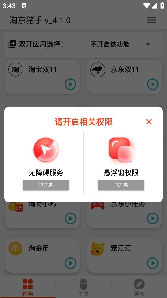 1、自动完成淘宝和京东日常任务,无需手动操作就可以自动领取活动奖励。