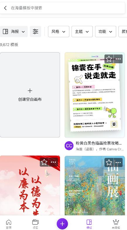 根据你的用图需求,创建一个空白画布,或从10万原创设计模板中挑选喜欢的模板直接使用。