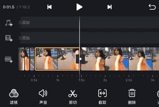 2、长按视频片段,就能前后拖动素材进行排序,很符合直觉的设计。