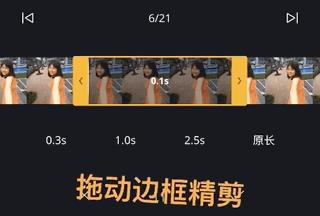 2、单击具体片段,出现黄框,拖动边缘可直接截取。