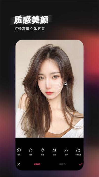 一键美颜+手动细节,肤质自然细腻,妆容更服帖,