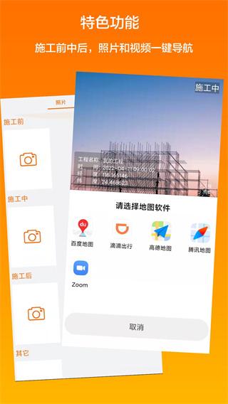工程相机最新版本是一款水印相机软件,用户可以使用软件将照片添加文字记号,自定义添加水印内容,还可以设置时间、天气、经纬度、一键文字颜色等等,以工程项目名称的照片分类方式,十分便捷。在主界面中,用户可以预览到工程名称所属的照片,方便你去识别,自带的图库有两种排序方式,时间排序、地点排序,你可以按照拍照时间和地点快速找到需要的照片。登录账号还可以使用云储存功能,可以将你的工程图片上传到云相机里,这样就不用怕工程照片删除了。