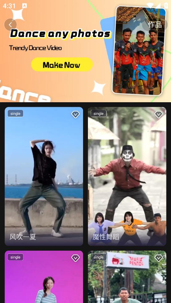 上传任意照片,即时生成各种舞蹈视频,包括流行美女、搞笑等舞蹈视频。