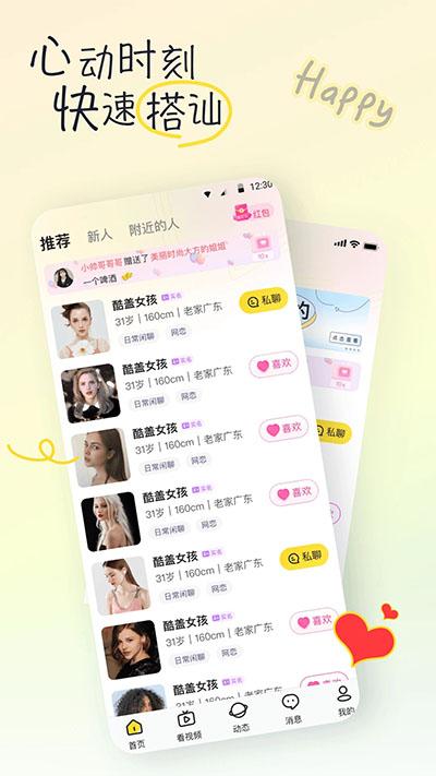 有你App是一款聊天交友软件,在这里,用户找到与自己志趣相投聊得来的人,有你支持多种聊天模式,包括文字、语言以及视频,总有一种适合自己。用户无需担心机器人陪聊,有你app上的用户信息都是真实可靠的,真人聊天,让你的生活不再孤单。软件内还设有短剧小视频,等待对方回消息的同时可以看看短剧打发时间,喜欢交友的朋友不要错过!