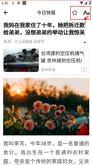 3、选择一篇文章进入,右上角有收藏与字体大小设置两个功能。