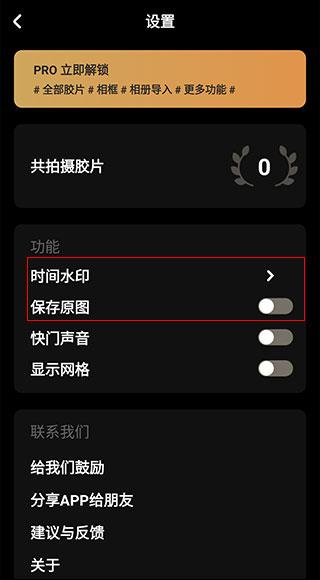 3、进入设置界面后,可在此选择时间水印样式以及拍摄后是否保存原图等等选项