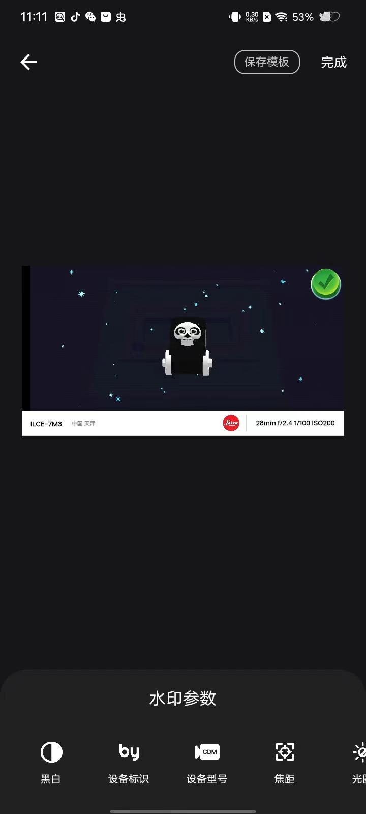 4、点击【编辑】可以进行水印参数的调整,调整好之后点击右上角的【完成】;