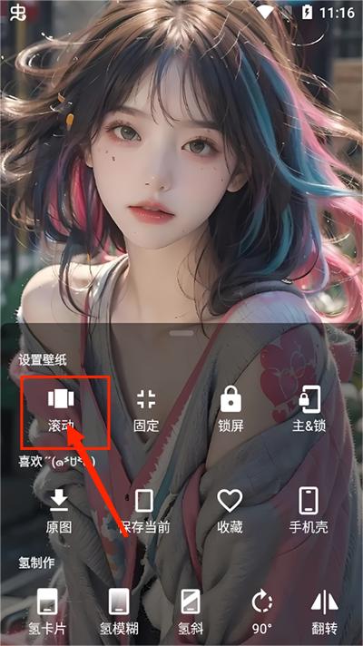 2、进入壁纸详情界面后,会召唤出菜单,这时点击滚动键即可。