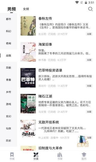 5.正版免费:正版小说,免费阅读,热门分类,都市爽文、言情穿越等。