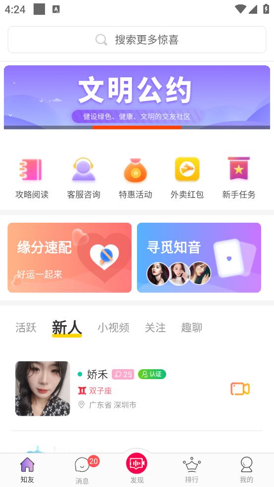 同城知趣聊天app是一款真实可靠的聊天交友软件,这里拥有千万优质单身男女用户,系统将根据你的定位来给你推荐最近的有缘人,高效配对,线下约会,让你轻松交友。同城知趣聊天支持多种聊天方式,包括文字、语音以及视频等,不用担心聊天没人回复,系统给你推荐的都是互相有好感的异性,聊天回复率高。孤单时刻想找个知心好友,那就快来下载同城知趣聊天app吧!