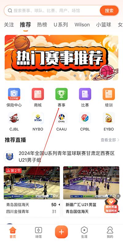 1、下载我奥篮球官方版打开登录软件,点击“赛事”;